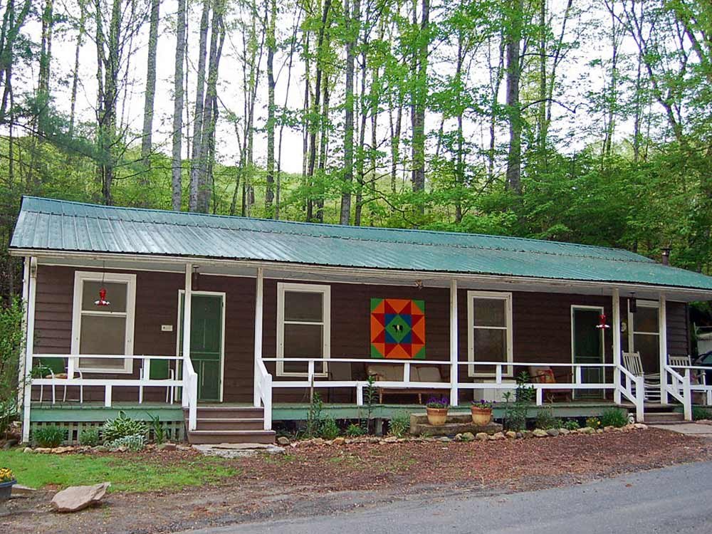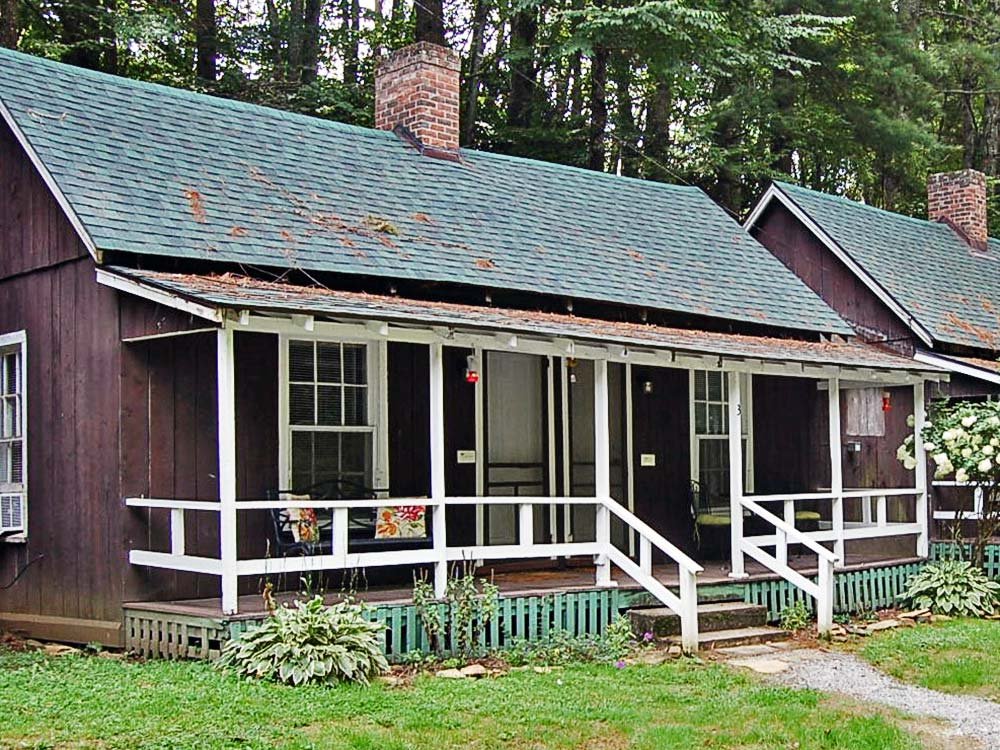 These cabins share a connecting wall with the cabin next to them making them ideal for friends and family traveling together. We have recently renovated these “sound barrier insulated” walls to ensure more privacy for our guests. Each cabin has seating on the front porch so you can enjoy the sound of the creek that runs through our property.
